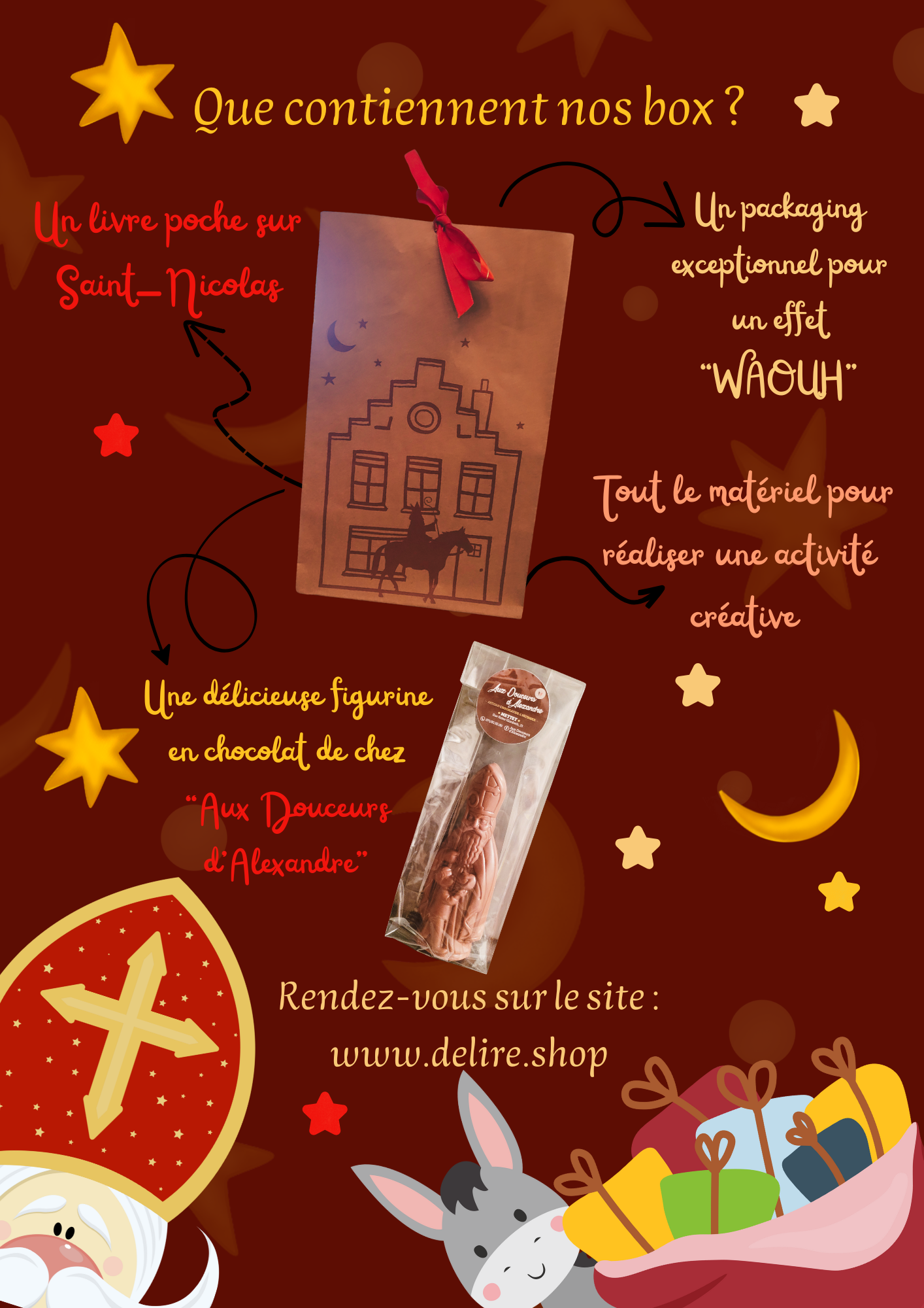 - Une gourmandise : Une figurine de Saint-Nicolas en chocolat au lait de la chocolaterie "Aux Douceurs d'Alexandre".